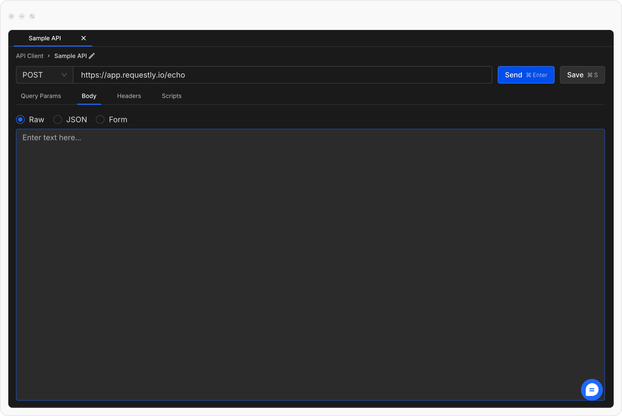 An API Request can be created in two ways: using the+ New button on the top left or from within a collection. The request creation process remains the same after that:
