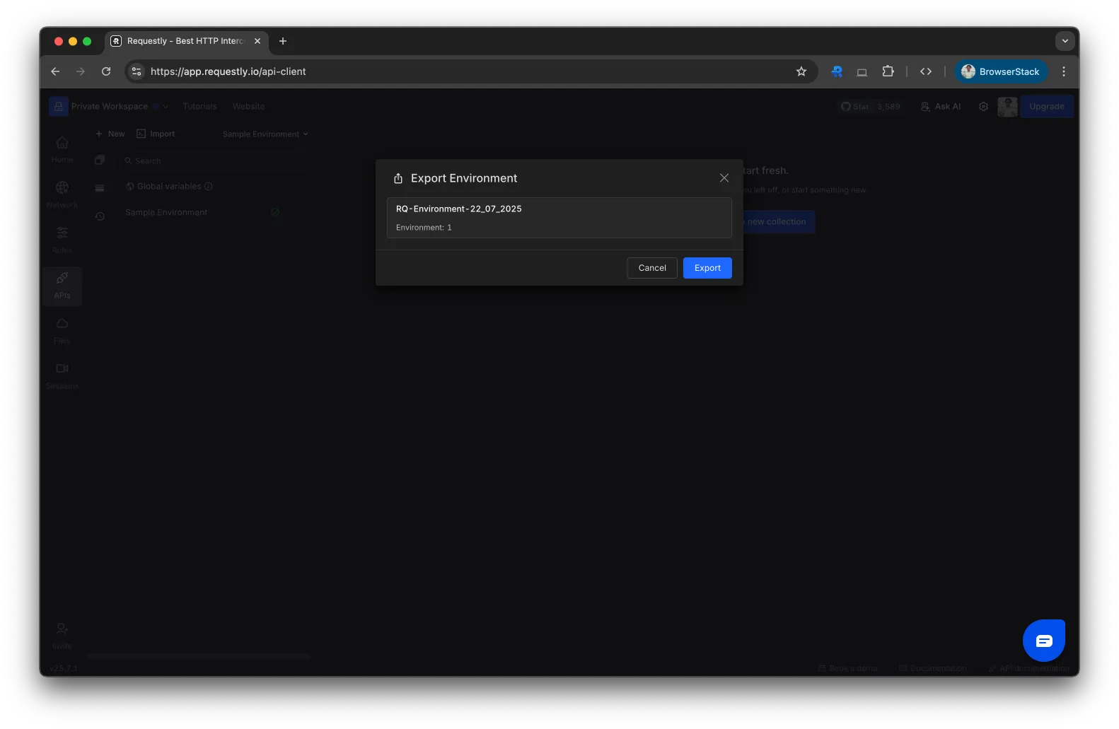 .json file and import them back into Requestly whenever needed. This helps you back up environment variables, move them across devices, or sync with teammates.