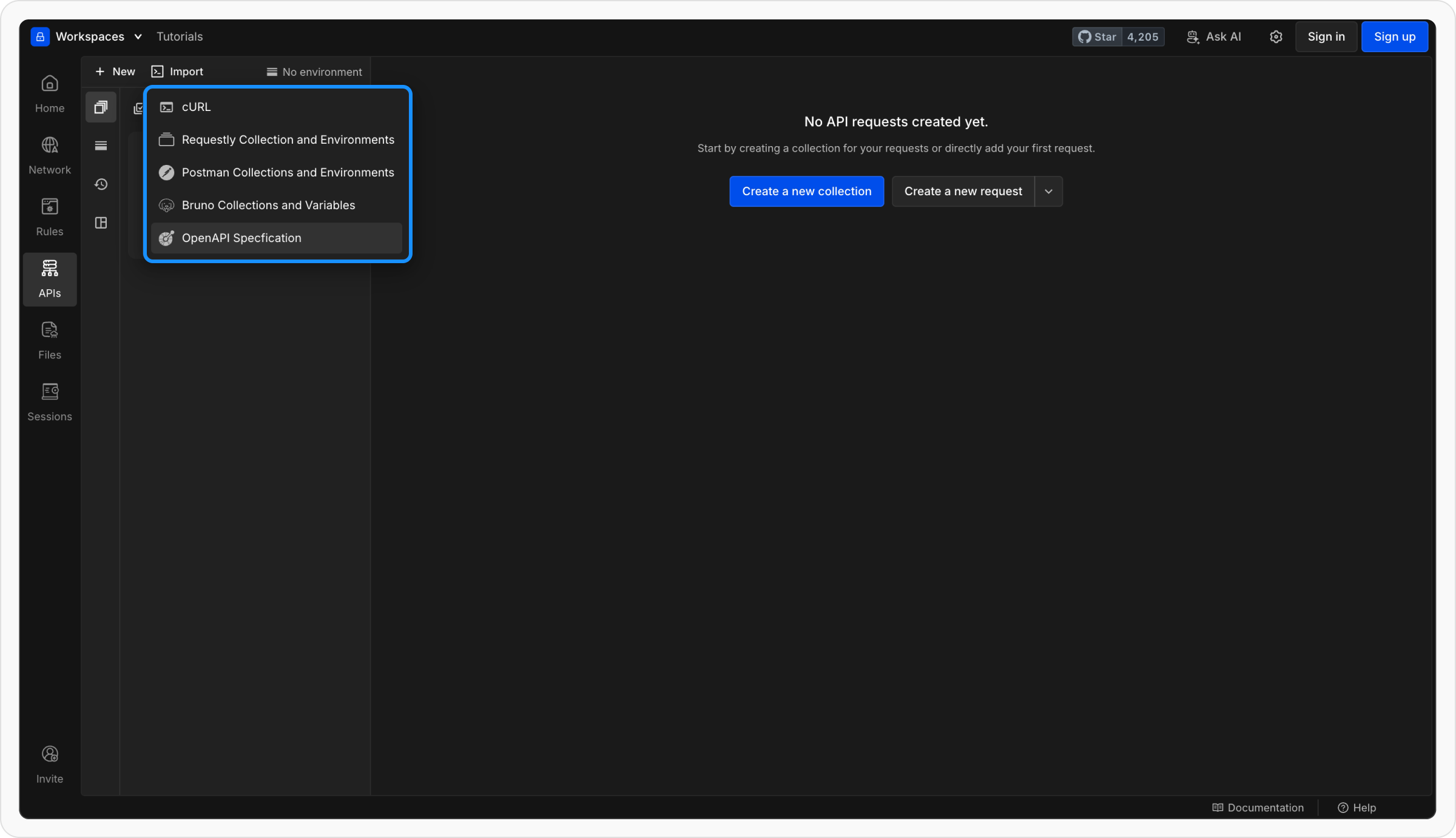 Go to your API Client workspace in Requestly. Make sure you’re in the workspace where you want to import your API collection.