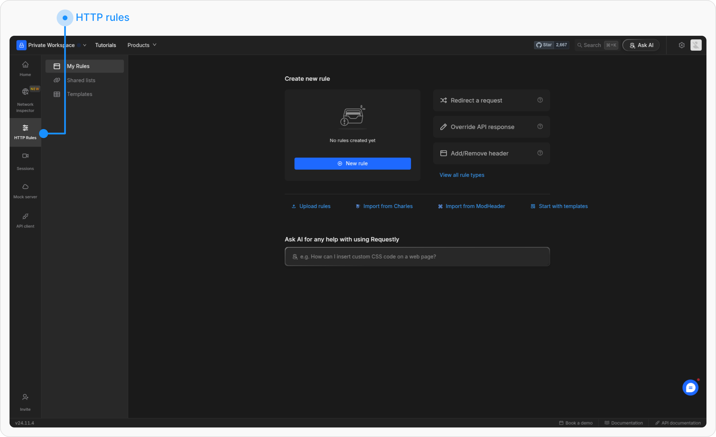Log in to your Requestly account and navigate to the HTTP Rules section.