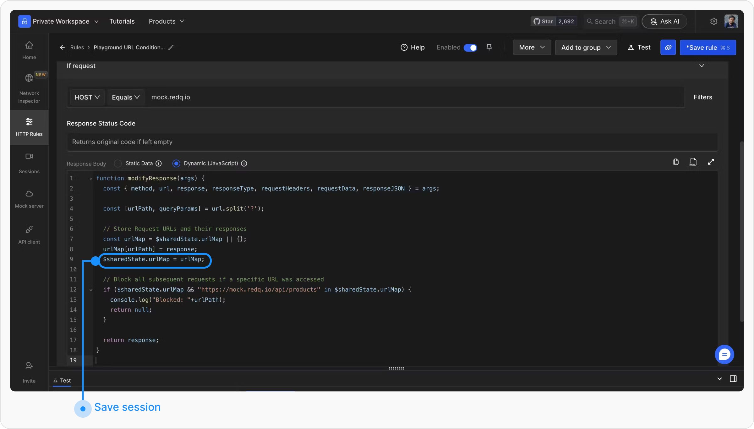 - Conditional Request/Response Modification: Use shared state to modify requests or responses dynamically based on conditions stored in prior requests. For example, you can conditionally fail requests based on request counts.