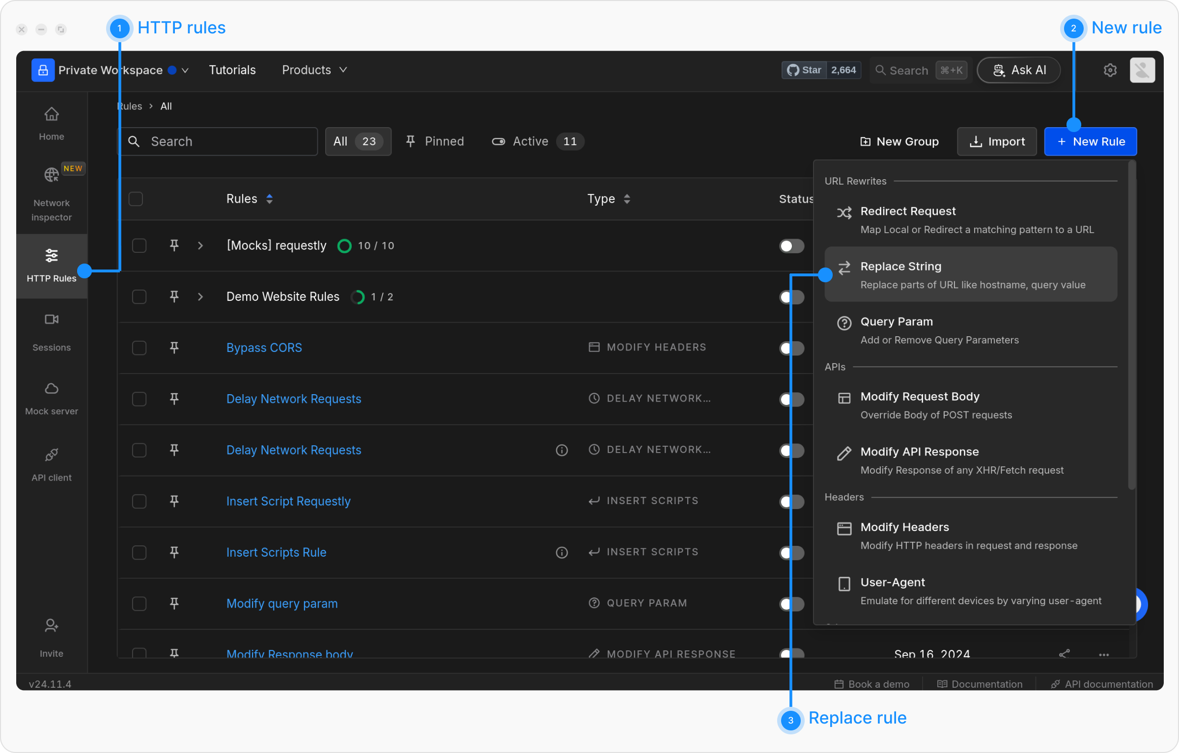 The Replace String Rule in Requestly allows you to modify the content of HTTP requests and responses, making it easy to test, debug, or apply fixes dynamically without modifying your original codebase. This feature is useful for replacing URLs, headers, or specific content in requests and responses.