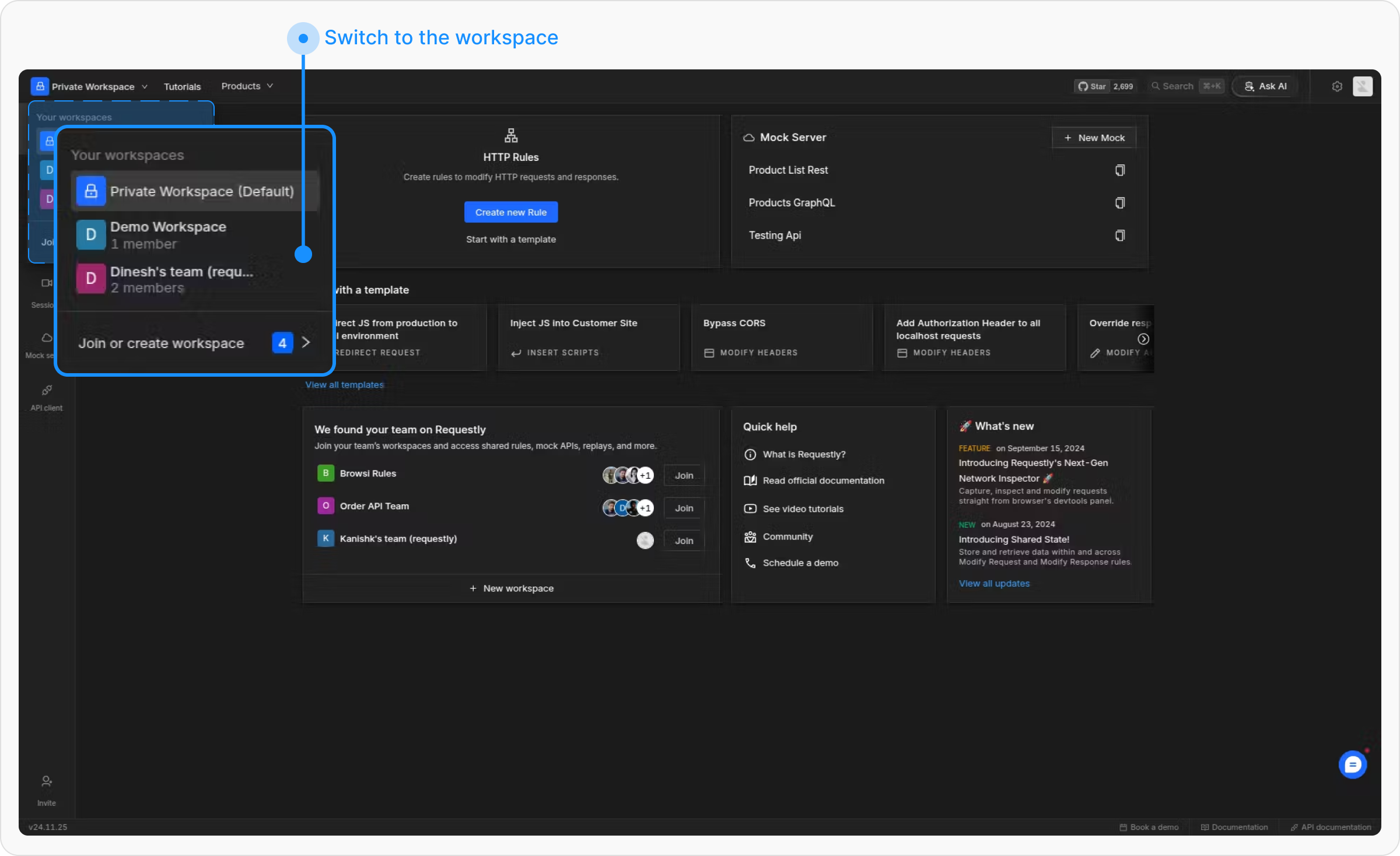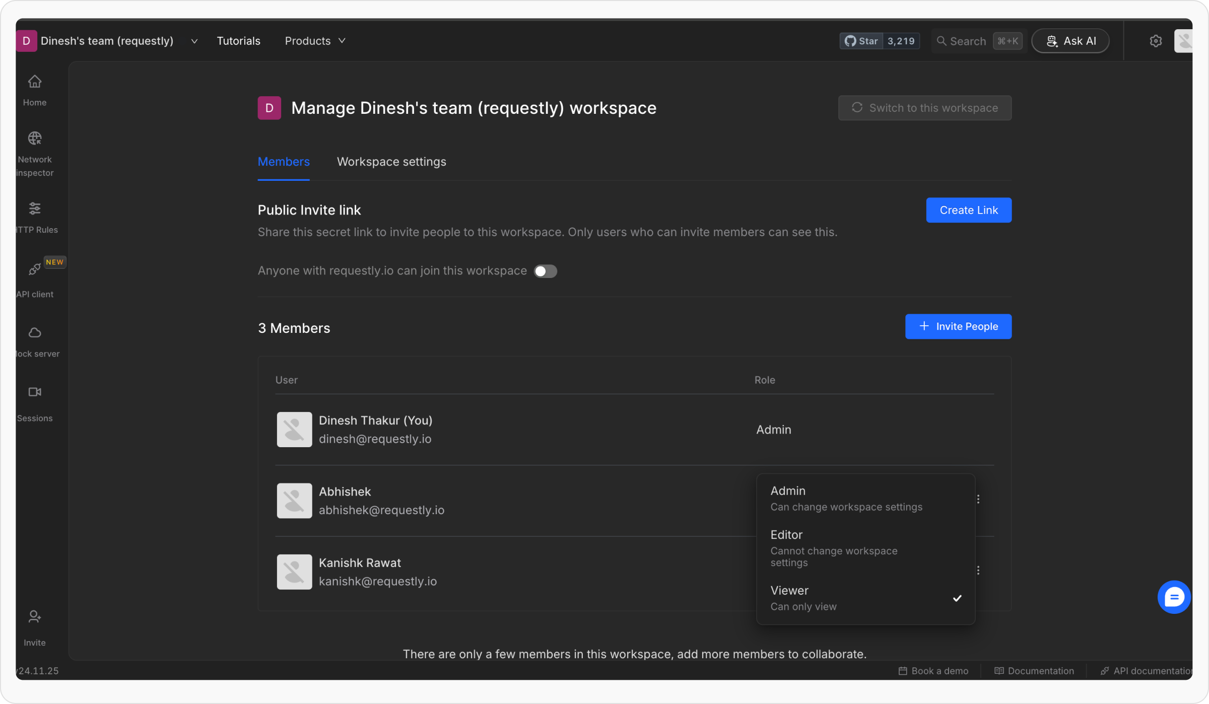 Navigate to the Requestly dashboard and switch to the workspace where you want to add members.