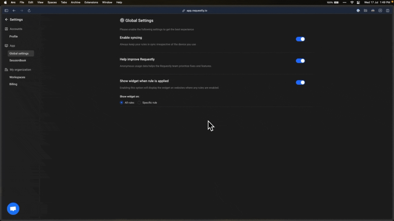 Navigate to the Requestly Settings page